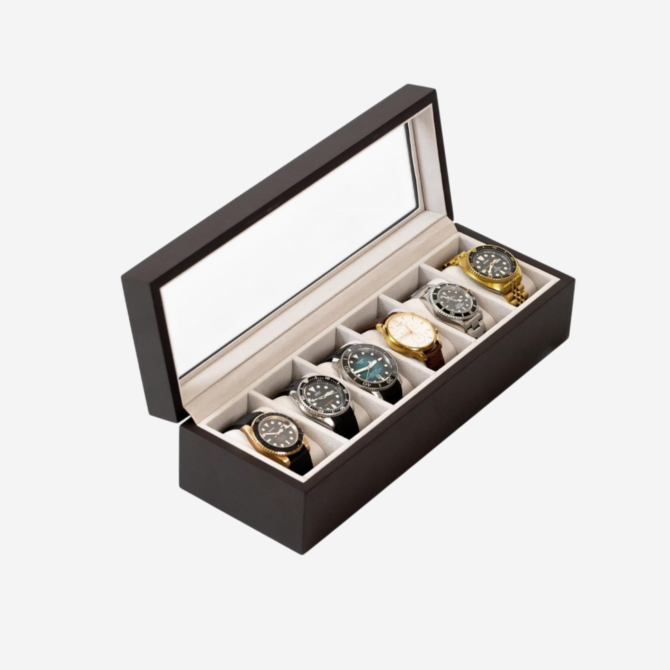 ✔️ Capacidad para 6 relojes estándar, perfecta para coleccionistas o entusiastas de la relojería.